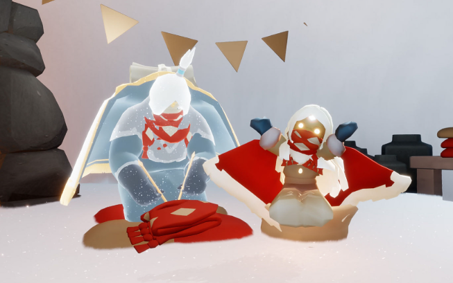 如果你想获得那条标志性的红围巾,可以直接去遇境的小雪屋找老奶奶先祖兑换,那里是专门处理节日物品的地方,老奶奶会穿着温暖的装扮等着你,活动期间她总是在这个小屋里出现,你需要准备好足够的蜡烛就能轻松获得它,这个地点非常显眼,一进入遇境就能看到溜冰场附近的小屋,进去取暖并互动就能触发菜单。