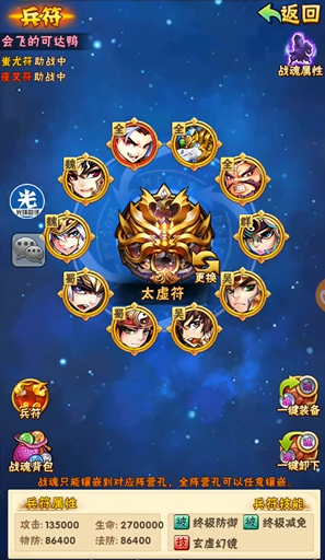 太虚符在游戏中定位为助战类兵符,其核心价值在于显著提升队伍的生存能力和技能释放稳定性。装备该兵符后,可减免来自敌方百分之四十五的技能伤害,同时提供百分之十的最终伤害减免效果。该符的核心机制在于当副将阵亡时,能确保主将依然可以正常释放超合击技能,有效解决了副将因生命值与防御值过低而早早退场所引发的技能链中断问题,这是其区别于其他兵符的关键优势。