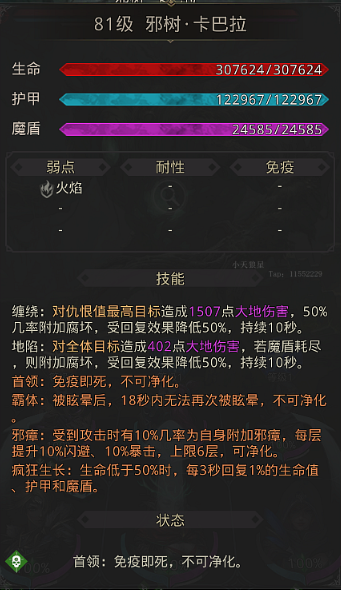 第五十层最终首领邪树·卡巴拉无狂暴机制,但群体攻击和毒素叠加压力较大。建议配置双治疗角色如永望之歌,搭配护盾型角色如影法师提升团队生存。战斗全程需通过交替战吼维持队伍状态,尤其在首领半血后腐坏效果触发时更需集中治疗资源。前排需堆叠护甲与生命属性,治疗侧重魔法盾与持续回复能力,神圣抗性药水应至少保留一瓶应对突发高伤。