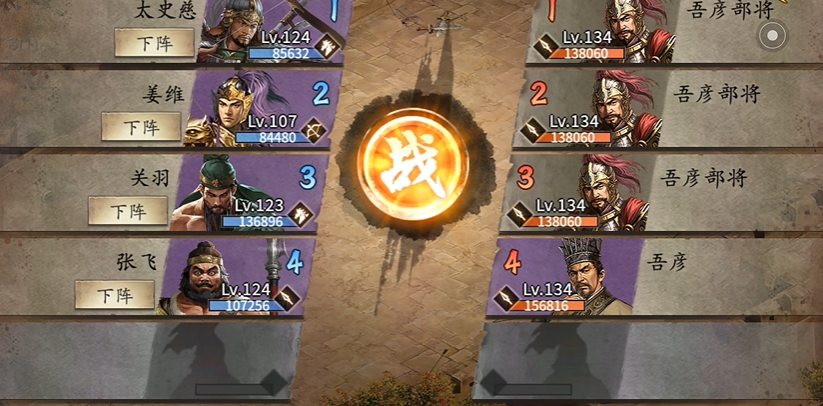通过以吾彦为守将的副本关卡(特别是像136级这种难点),阵容搭配和出手顺序可是有讲究的。实战中,比较靠谱的打法是让太史慈打头阵,给他配上朱雀,上来就先把大招放了,之后主要靠平砍输出,留好第二个大招的时机。接着关羽出场,带着陆逊副将,别急着放技能,先用战术平砍消耗敌人,为后面的伙伴创造机会。然后轮到魏延上场,带着张飞副将,这时重点是见到吾彦本体后千万要忍住别放大招!因为吾彦穿着真霸下这类硬甲,能挡掉战法,硬碰硬不划算,咱们的任务是尽量用平砍打掉他前面几排兵。最后压轴的是司马懿,这时地形克制得看准了,同样别放技能,用长蛇阵的加成去拼消耗最稳妥。这套打法的精髓就在于控制技能释放的时机,尤其是在面对吾彦时,乱放技能很容易吃大亏。