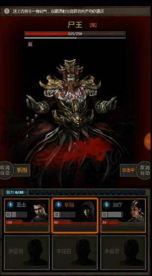 开场即需保持胖子嘲讽技能不间断,确保尸王攻击目标锁定。彩儿全程治疗维持队伍血量,若操作失误可启用自动技能强攻,但必须保障彩儿存活。建议战前服用律鬼丹提升减伤效果,并装备鬼小孩任务获得的地府律鬼镜(需将棺材中孩童带回营地安葬获取),显著降低鬼怪伤害。