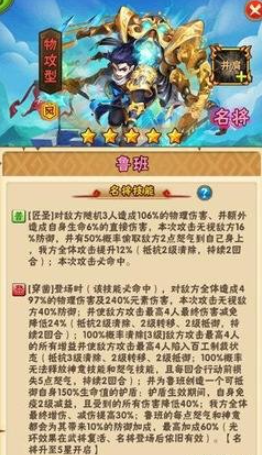 光有阵容框架还不够,鲁班本身的工艺水平也得达标。这就涉及到了他的养成门槛。最基本的要求是,他的品质需要达到紫金级别,并且至少激活一星,这样才能解锁完整的技能链,获得诸如攻击力提升等关键增益。他的核心技能,比如能清除敌方增益的百工制裁,必须优先点满以保证触发概率和效果强度。在装备和符文的选择上,要着重堆叠增强其法术攻击、暴击率和法术穿透的属性,一套合适的法术加成套装是基础配置。他的技能机制非常依赖怒气和神意值的循环,因此需要通过佩戴应龙玉佩这类宝物,或者搭配小乔这类能回复怒气的辅助,来确保他每回合有足够的动力持续施放技能。把这些硬件条件准备好,鲁班才有了在战场上挥洒自资本。