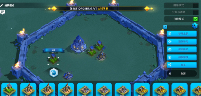 市政厅、医院、城堡等核心设施应集中于心形中央区,采用对称式布局强化庄严感。联盟中心要塞不宜破坏轮廓完整性,建议置于心形右下方边缘,与军事建筑群形成联动。步兵营等矩形建筑须调整方向使其长边切合弧线走向,减少视觉冲突。编辑模式下保存三套布局方案至关重要:日常启用完整心形,战时切换为隐藏资源建筑的防御变体,节日则启用全装饰庆典模式,通过预设快速响应不同场景需求。