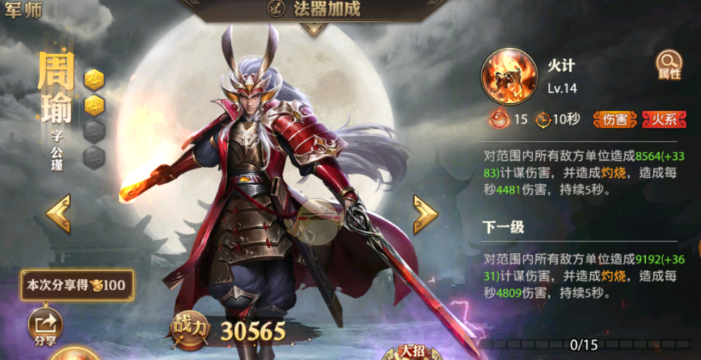 装备和宝物选择上优先堆暴击率和火系伤害加成,金色宝物祝融印能提升35%灼烧效果是核心装备。武将培养方面主升周瑜和小乔的星级和技能等级,三星周瑜解锁烈焰滔天后会产生质变。战斗中要时刻观察燃烧层数,当敌方身上叠加到5层时立即释放军师组合技烽火连天,能造成基于最大生命值的百分比伤害,这个时机把握是通关的胜负手。