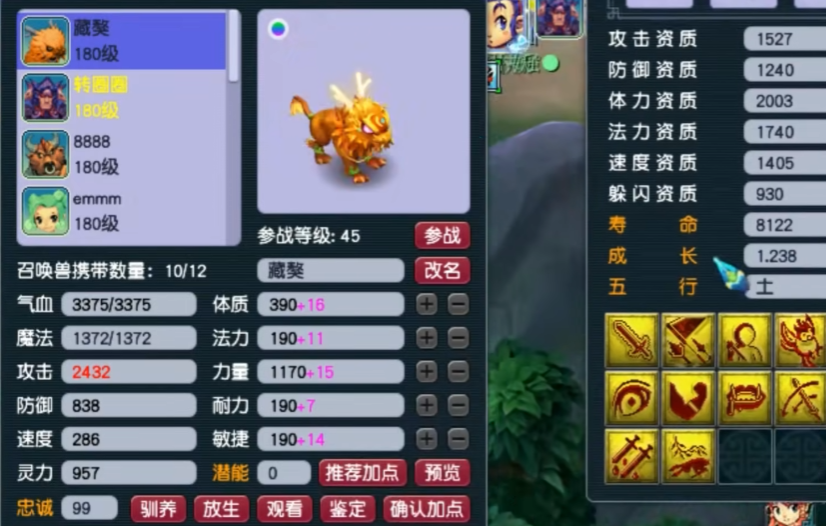 法术型宝宝肯定是很多人的首选,因为它们能和你一起进行面伤压制。这里面古代瑞兽是个经典答案,它自带泰山压顶这个群体法术,技能格子也还算不错,要是能有个高级驱鬼那就更完美了,抓鬼任务特别好用。它的优势在于获取相对容易,法术输出稳定,能配合你快速清掉小怪。除了瑞兽,像灵符女娲这样的法宠也不错,爆发可能更高,但弄起来会麻烦点。这个阶段弄法宠,你不用太纠结于极品的资质和成长,重点看有没有核心的群体法术技能,法力资质别太低就行,主要是为了补足伤害和应付日常。
