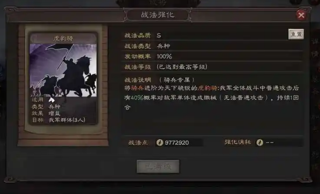 虎豹骑则通过提高突击战法的发动概率来强化吴骑的连击和突击效果,使得伤害输出更加稳定和频繁。这种兵种适合搭配太史慈或孙尚香等依赖普攻和突击战法的武将,能有效提升如当锋摧决或一骑当千等技能的触发机会。虎豹骑的优势在于其持续伤害能力,能够在多回合内维持压力,但需注意它与速度属性的协同,以确保先手优势不被削弱。玩家在资源有限时,可优先选择虎豹骑来弥补输出稳定性不足的问题。