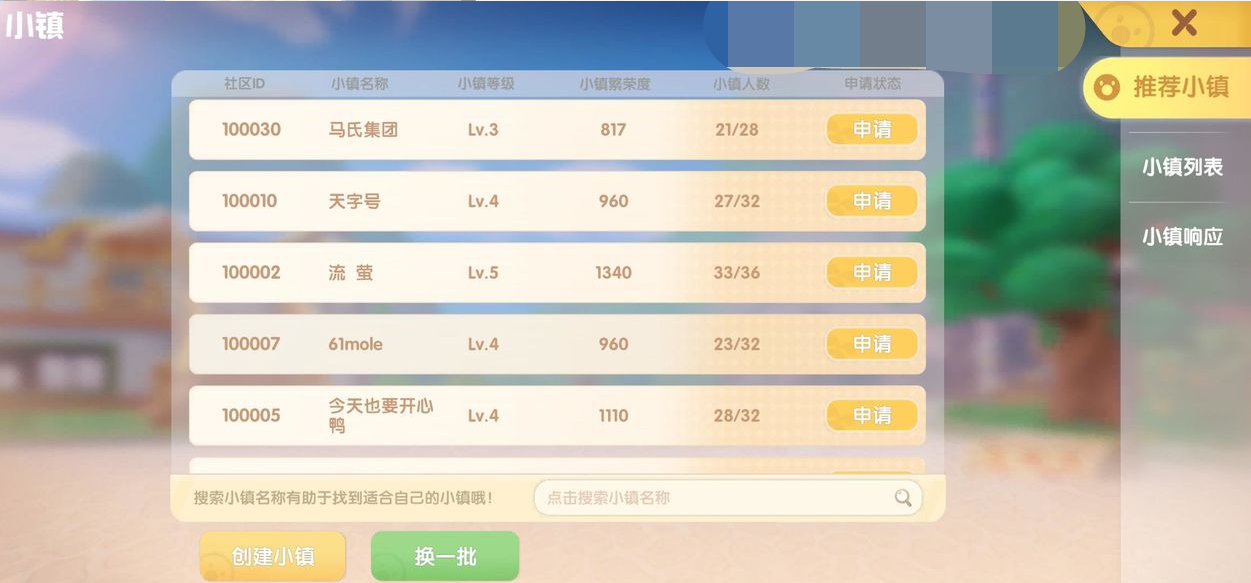 解锁功能后,玩家即可申请加入现有小镇。点击小镇图标进入界面,系统会展示可供申请的小镇列表。玩家可以浏览不同小镇的信息,根据自身偏好进行筛选,也可以直接输入已知小镇的名称进行精准搜索。选定目标小镇后,点击申请加入按钮即可提交请求。申请提交后,需要耐心等待该小镇的管理者(镇长或管理员)审核批准。只有获得批准,玩家才能正式成为该小镇的居民。