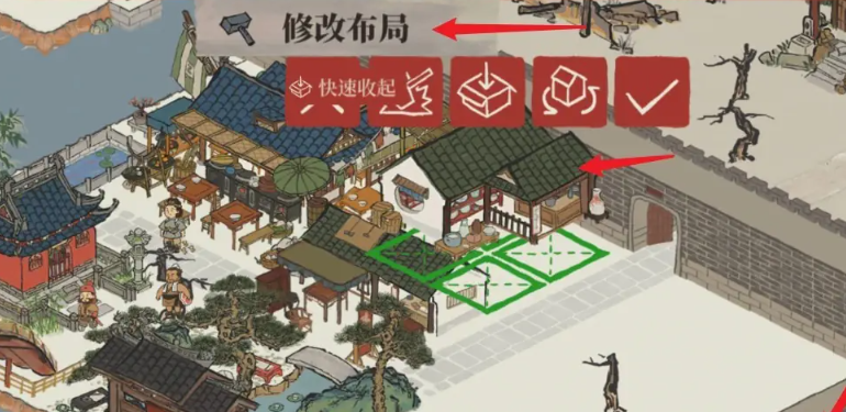 拆除道路的具体操作流程包括先点击游戏界面左下角的应天府印选项,打开菜单列表后选择第二项改布局,进入场景编辑模式。在场景右下角点击修路图标后,玩家可以用手指直接涂抹地图上已有的道路,被涂抹的路径会被立即删除,而涂抹空白区域则会生成新路。完成修改后,点击红色勾勾确认变更,再点击右下角的完成按钮保存新布局,系统会验证所有建筑是否与道路相邻,否则无法保存修改。