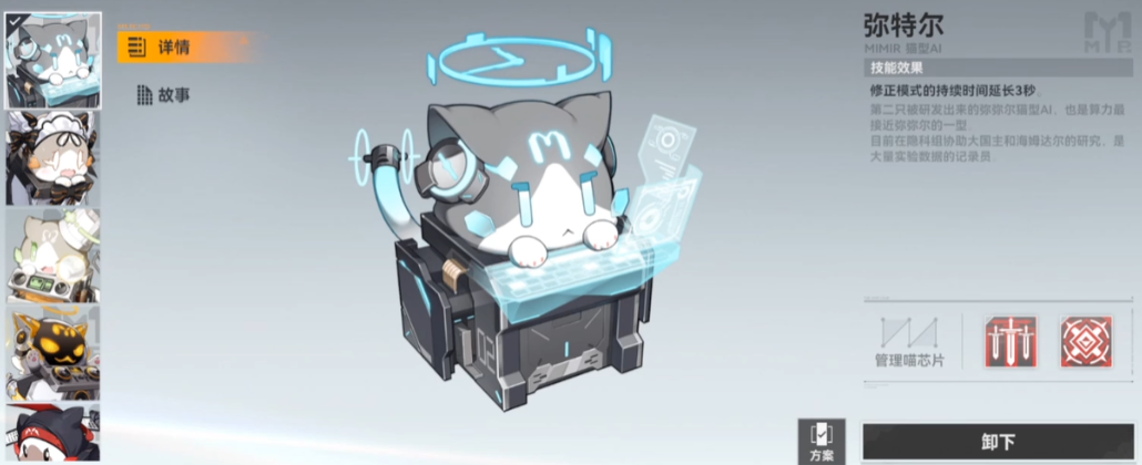 弥特尔则是一只专注于战斗节奏的管理喵,它的效果是直接增加修正空间的持续时间。对于能够频繁进入修正状态并擅长在修正期间打爆发的队伍来说,延长这个宝贵的输出窗口意味着能倾泻更多伤害。虽然它的通用性不如前两者,但在搭配得当的速攻阵容中,弥特尔带来的伤害提升是非常直观的。选择它通常意味着你对队伍的输出循环和进入修正的频率有相当的自信。