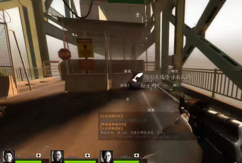 穿过汽车区域直行至尽头,可以找到一座梯子并爬上桥梁。来到桥面后只需等待数秒,前方的大桥便会被炸断,随后有两架战斗机掠过上空。此时需要从炸开的断口跳下去,清理周边的僵尸,然后进入一片墓地区域。这段流程衔接了从地面到桥梁再到墓地的场景转换,是关卡中的一个重要节点。
