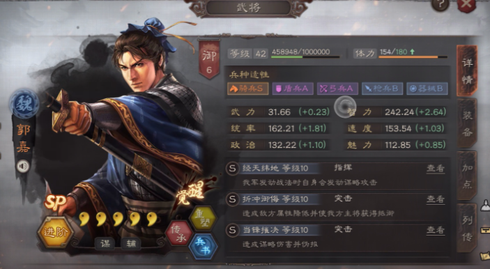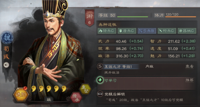 赛季过渡期攒武将的时候,可千万别随便把荀彧拆战法或者喂掉。后面赛季换青州兵这个强力枪兵战法时非得用他不可,拆了可就亏大了。哪怕暂时用不上,留着当内政后备也比拆成四面楚歌划算——那战法除了给特定武将持续挂毒之外用处有限,真不如荀彧本人坐镇城里带来的资源收益实在。有些朋友阵容齐全可能觉得他多余,但到了需要极限屯田冲科技或者补铜币的阶段,他的价值就凸显出来了。