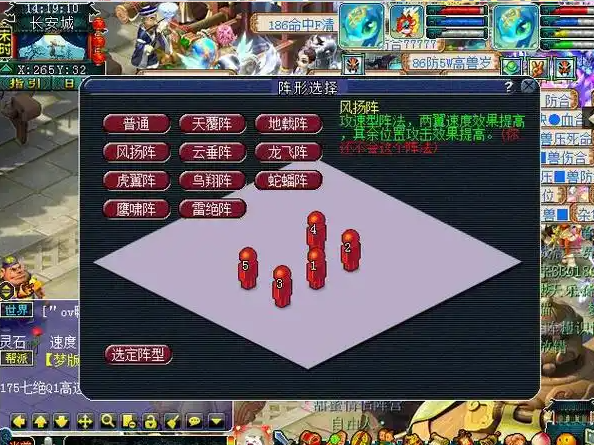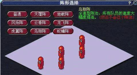 更换阵法的策略需结合队伍构成与战斗目标。物理输出门派通常优先选择提升伤害加成的阵法如风扬阵(队长位+20%伤害)或虎翼阵(队长位+25%伤害);追求先手的封系或高速单位则适用鸟翔阵(全队+20%速度);面对高强度法术或物理攻击时,地载阵(全队受物理/法术伤害-15%)或龙飞阵(队长位受法术伤害-20%)能显著提升生存力。辅助与法系门派需根据团队需求灵活搭配,例如云垂阵可大幅降低队长位承受的伤害结果。