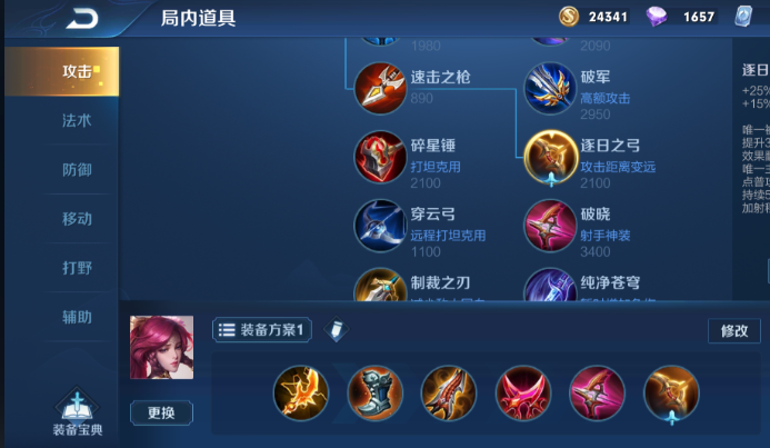 核心思路围绕攻速和暴击展开,因为伽罗的被动能让暴击附带强力减速,黏住对手就能持续输出。开局先出急速战靴提升攻速和移速,接着补闪电匕首或影刃强化暴击率和清线效率,这两件装备能让你前期就拥有可观的压制力。中期核心是无尽战刃,它大幅提升暴击伤害,配合被动减速效果让敌人寸步难行。破晓作为射手神装必不可少,高额物理穿透专门克制坦克,最后一件根据战况选泣血之刃增强续航,或补贤者的庇护提高容错。鞋子后期可换逐日之弓,射程加成能让伽罗在更安全的位置点射敌人。