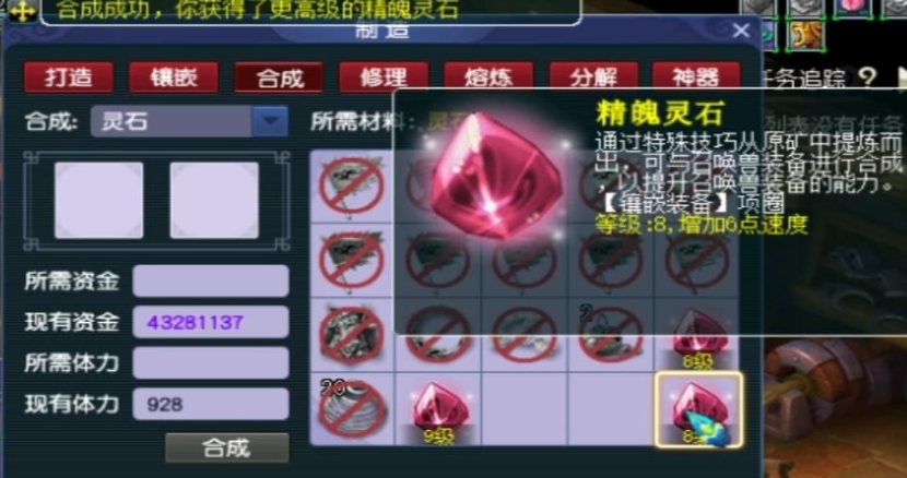 拿到一级灵石后,下一步就是合成更高级的。合成地点一般在长安城的布店或铁匠铺,找缝纫台或打铁炉就能操作。放两块相同等级、相同属性的灵石进去,点合成按钮,系统会按你的灵石技巧等级计算成功率,成功就能得到高一级的灵石。合成前最好检查下灵石技巧等级是否够高,等级不够的话失败率会上升,白白损失材料和体力。合成时体力消耗是根据灵石等级来的,等级越高消耗越大,所以备足体力很关键。