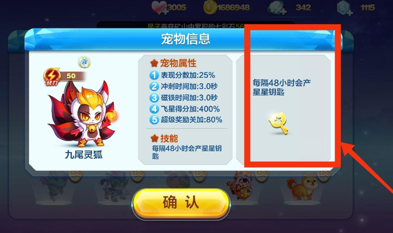 通过五太阳宠合成的神宠具备显著优势。例如路西法、米诺斯、九尾灵狐、守望者及霹雳云豹等均属此列,其中九尾灵狐能定期产出开启天空之城的星星钥匙,长期收益突出;米诺斯则拥有优异的得分能力。这些神宠不仅提供高额的表现分、冲刺时间等基础属性加成,其专属技能如免疫火圈伤害、奖励关得分提升等,更能大幅优化跑分策略与生存能力。