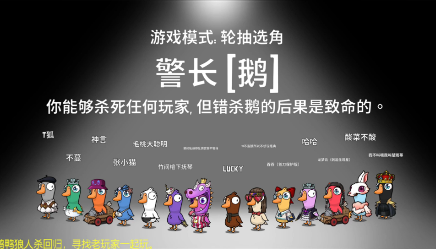 鸭阵营玩家通常通过伪装成好人身份来隐藏真实意图,这是一种核心欺骗策略,骗取信任并避免被怀疑。鸭玩家会优先选择跳身份如警长或正义使者,因为这些角色在好人阵营中具有权威性,容易融入群体并误导他人。这种做法基于游戏的机制设计,鸭玩家通过冒充特定身份不仅能混淆视听,还能制造内部混乱,从而为击杀好人创造机会;如果选择不当身份,可能面临快速暴露的风险,因此初始决策至关重要。