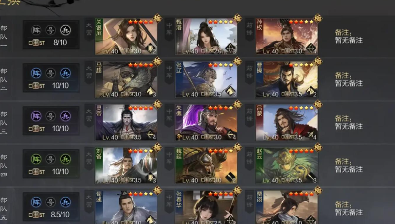 更换武将阵容是部队调整的首要步骤,玩家应根据战场需求灵活选择核心武将,并结合兵种克制关系进行搭配。以输出型武将为核心理念,如马超或张飞,搭配具备辅助技能的武将,形成攻防平衡的阵容;远程与近战兵种的组合能有效应对不同敌方阵型,如弓箭手与步兵的搭配可增强防御,而骑兵与矛兵的组合则提升突击能力。 玩家需定期评估阵容效果,避免单一配置,通过尝试新武将拓展战术多样性,如神将系统或肉盾武将的引入,这有助于在攻城或守城时提升整体战斗力。实践中,装备强化和技能联动也至关重要,确保武将发挥最大效能。