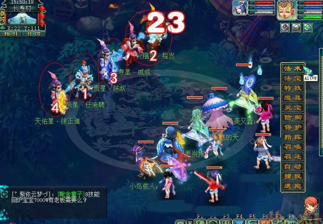 后续阶段应转向击杀天佑星徐正道作为辅助目标,再集中攻击天寿星和天福星,天寿星通常为狮驼岭(LBC)门派,攻击模式较直接,而天福星技能范围广但伤害一般,最后针对主怪陈坎发起总攻,期间持续控制白虎确保其不行动,直到战斗结束白虎自动逃跑,整个过程需保持输出连贯性避免中断,以保障队伍存活率。