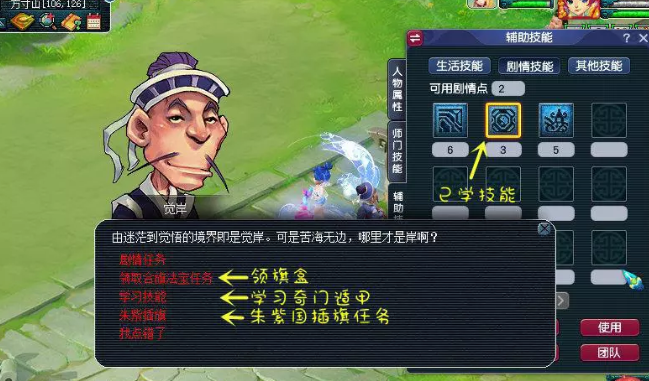 奇门遁甲是梦幻西游中的一项剧情技能,玩家在方寸山找到NPC觉岸进行学习。这项技能的核心消耗集中在剧情点上,这是游戏内通过完成剧情任务获取的特殊资源。学习奇门遁甲能为玩家提供便捷的传送功能,但需合理规划资源投入,以避免影响其他技能发展。