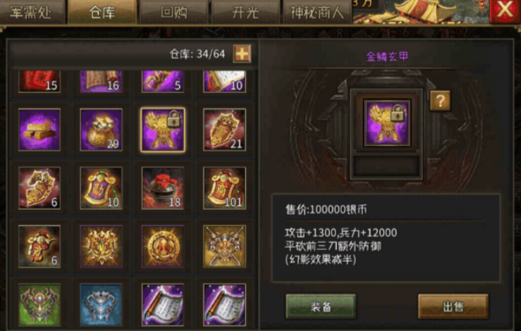 紫色御宝因淬火特性成为终极目标,其品质压制体现在三方面:一是基础属性较红宝跃升约40%,二是淬火槽位解锁额外增益层级,三是作为唯一可突破至旷世品质的载体。铁脊尖刺、金鳞玄甲等攻击型紫宝适配吕布、赵云等爆发将,而御天铠、磐龙壁等防御系则服务于典韦、曹仁等坦克位。需注意淬火属性存在互斥规则——攻击、防御、血量不可共存,需根据核心需求锁定主属性。
