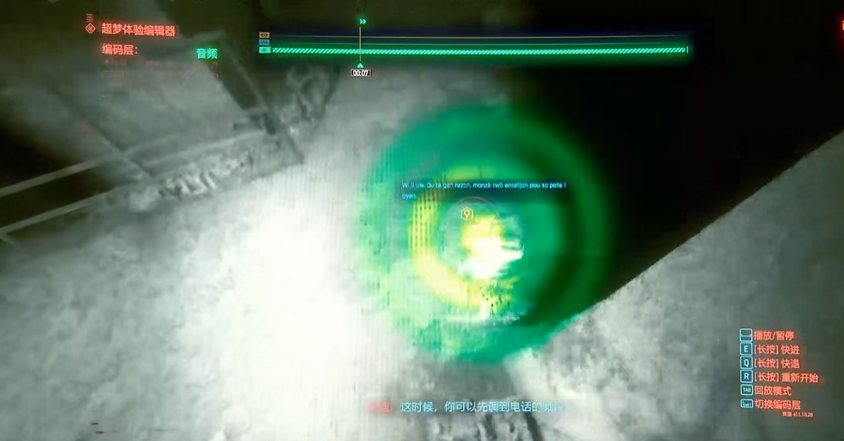 紧接着的第二段超梦则需要你转换思路,将搜索重点从视觉切换到听觉。这时你需要手动将当前激活的编码层从视频层切换至音频层。切换后,系统可能会提示安装自动翻译包,你需要稍作等待直至其安装完成。仔细聆听环境中的声音,特别是来自楼梯下方电话中的对话。当播放到加粗的音频线索段时暂停,并对电话进行扫描,从而获取黑客通话的具体内容,明确对方属于巫毒帮的身份。这个过程考验的是你对不同信息层的敏感度和切换时机。