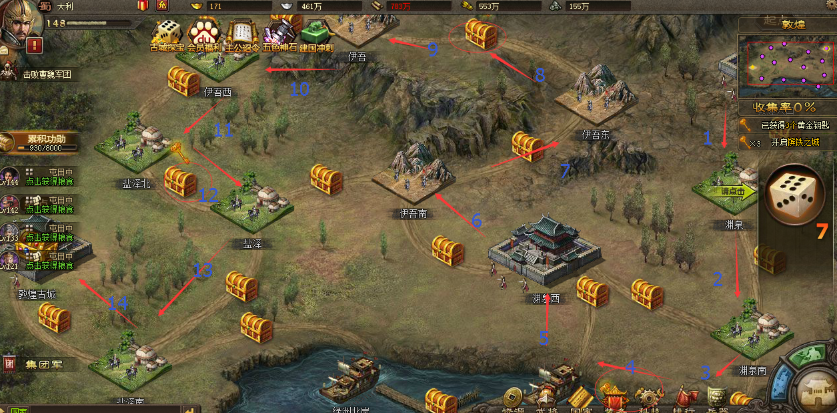 进了楼兰地图,路线选择就有点讲究了。地图上会明确标出不同的路线,每条路线的最终奖励侧重不同。比如有的路线终点给36万粮食和大量经验,算是比较基础的奖励;有的路线终点给50万镔铁,这对老玩家来说吸引力更大。作为新手,如果你的战力还不是特别高,追求安稳过关,可以选择那条标注着最短路线的线路,它能让你比较快地到达终点,拿到36万粮食、96万经验、募兵令和免费精炼次数等保底奖励,性价比不错。你也可以根据自己当前最缺什么资源来决定走哪条路,地图上的宝箱位置和隐藏路线也可以多留意一下。