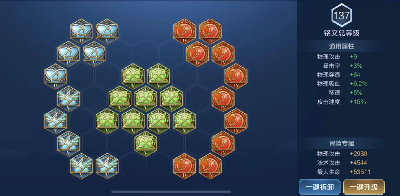 影的铭文搭配重点在于强化物理攻击、穿透和机动性,常见的组合包括红色铭文使用9个异变和1个祸源,绿色铭文固定10个鹰眼,蓝色铭文则采用6个隐匿和4个狩猎的组合。这套铭文总计提供可观的物理攻击和穿透,祸源则补充少量暴击率,狩猎和隐匿的移速与攻速加成让技能衔接更流畅。备选方案中,如果追求极致攻速,也可以将红色铭文换为10个红月,或者搭配夺萃提升吸血效果,确保清野和团战时的持续作战能力。