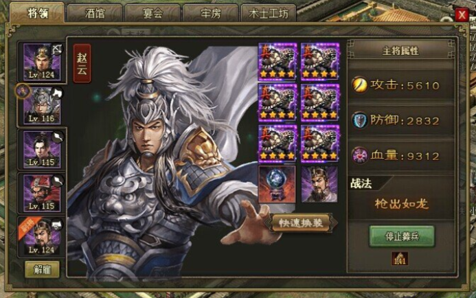 白虎套装则更偏向暴力输出提供更高的战法攻击和攻击强度,能让赵云的技能伤害达到巅峰。这套装备适合追求速战速决的玩法,在PVP或快速推图时能迅速压制对手。凤凰套装的防御属性相对较弱,需要玩家在操作上更加精细,或者通过阵容搭配来弥补生存短板。如果你喜欢激进一点的战术,凤凰套装的爆发力绝对能带来爽快的战斗体验。除了烛龙和凤凰,神武套装也是可选方案,它能提升暴击率和攻击力,进一步增强赵云的爆发输出。但神武套装获取难度较高,更适合资源充足的后期玩家。对于未觉醒的赵云,灵龟套装可以增强平砍伤害,烛龙套装则强化战法输出,不过未觉醒赵云多作为副将,装备通常由主将决定。