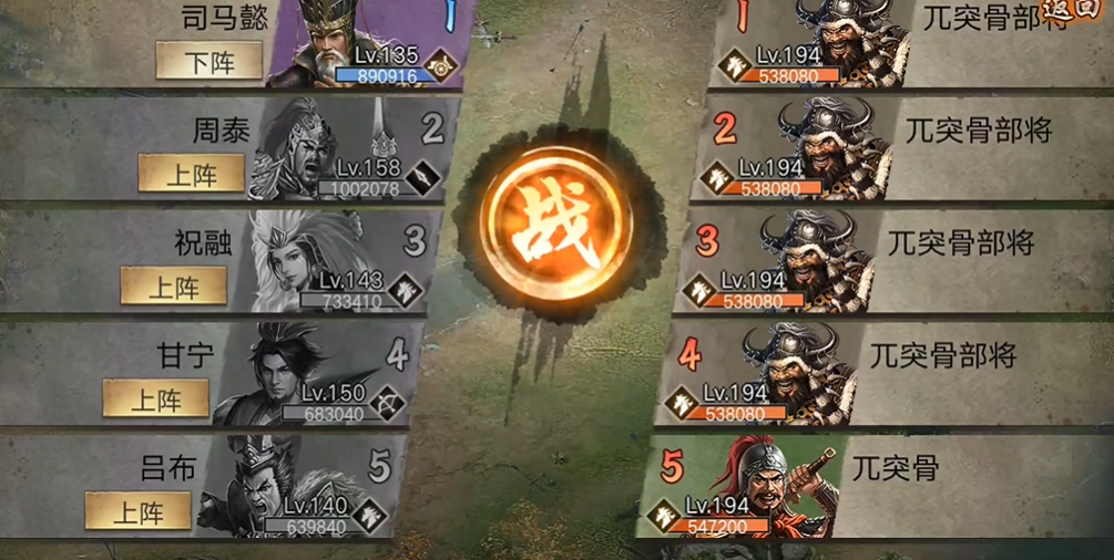 应对兀突骨时推荐使用祝融、觉醒周瑜和甘宁的阵容组合,祝融起手战法可利用混乱效果干扰前排队友,周瑜提供控制与输出支持,甘宁负责后期收割。装备选择上优先搭配增加生存能力的物品如细鳞银甲和长生镜,以确保武将能承受住兀突骨的猛烈攻击并维持持久战力。