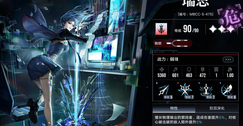 瑞思技能点法的核心在于理解其以光剑为核心的双必杀输出机制,并据此规划技能升级的优先级。瑞思是一名擅长物理输出的高危级禁闭者,其技能组围绕投掷、拾取与引爆光剑展开,主要输出手段为必杀技降罚与第二必杀恶行尽除,被动技能则能大幅强化她在特定操作后的单次普攻伤害。技能加点的总体思路是优先保证核心输出技能的等级,以最大化其爆发伤害能力。