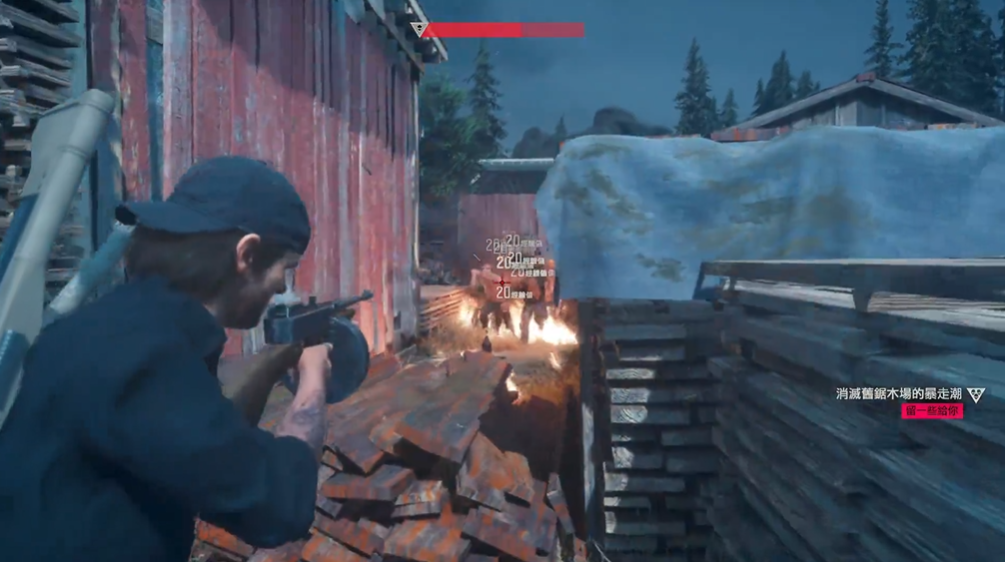 灵活利用伐木场特有的环境进行周旋是生存的关键。场地内的木头堆放处通常可以互动,放下木块能临时阻挡尸潮的推进,为玩家创造投掷燃烧弹或开枪输出的宝贵时机。一些狭窄的缝隙、窗户或管道可供玩家蹲伏穿过,而尸潮只能绕行,这提供了短暂的安全输出窗口。攀爬至仓库等高耸建筑物的顶部,向下方汇聚的尸潮投掷手雷或燃烧弹是一种高效的杀伤方式,但需注意建筑物内部结构可能较为复杂,在没有把握时应以室外机动战为主。水坝上方的桥梁等地形狭窄处,能有效限制尸潮速度和宽度,使其更易于集中火力消灭。