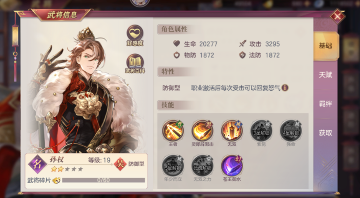 小伙伴们想用好孙权这个武将,首先得明白他的核心定位。他不是冲在前排硬扛伤害的传统肉盾,而是靠闪避吃饭、能为全队提供怒气支持的战术核心。他的价值在于每次成功闪避攻击后,都能给咱家所有武将回复怒气,这等于变相加快了咱们整个队伍的技能释放节奏。要让他发挥最大作用,最关键的就是得把他的闪避率尽可能堆起来,战魂选择上优先挑那些带闪避属性的,这可是他吃饭的本钱。