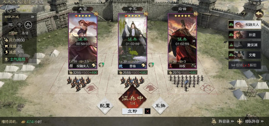 优化征兵节奏需综合管理体力、预备兵与战损控制。夜间安排低损耗队列扫荡低级地或屯田,白天集中体力攻打高级地,最大化利用队列产能。预备兵分配遵循精准补充原则,仅在主力部队单个武将需补兵时调用,避免浪费储备。战损控制是关键,通过侦查目标、兵种克制调整及战法搭配(如减伤、恢复类技能)降低兵力损耗,减少重复征兵需求。赛季初期资源返还机制可集中用于队列升级,新手期体力减半特性则利于快速积累队列扩容的基础资源。