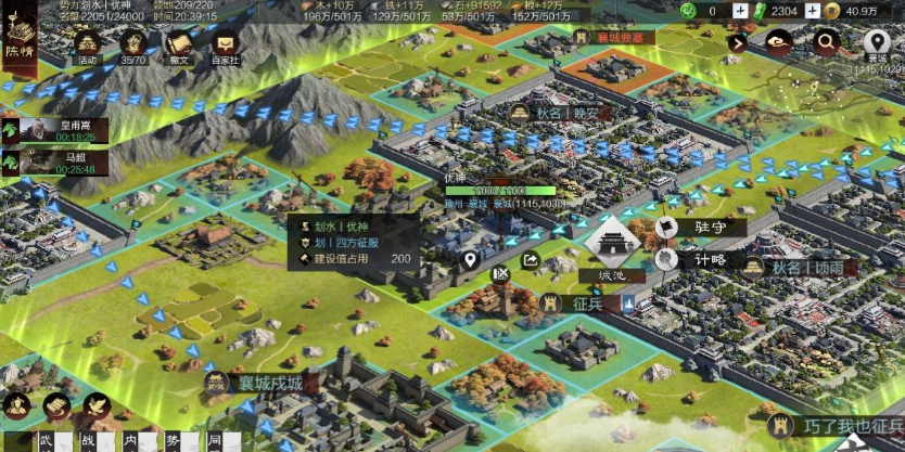 铜钱与政令的战术运用能突破常规限制。铜钱消耗可临时增加一次性建造队列,适用于关键建筑升级期,但需优先用尽免费队列再启用付费功能。政令加速适用于高战损后的紧急补兵阶段,尤其攻打高级地或城池后需快速恢复主力战力时。征兵队列的武将配置也影响效率,选择自带减少征兵时间技能的武将(如特定内政将)或学习相关战法可缩短单次征兵时长。土地等级同样作用于征兵速度,占领更多5级及以上资源地可使屯田收益翻倍,为多队列运作提供稳定资源流。