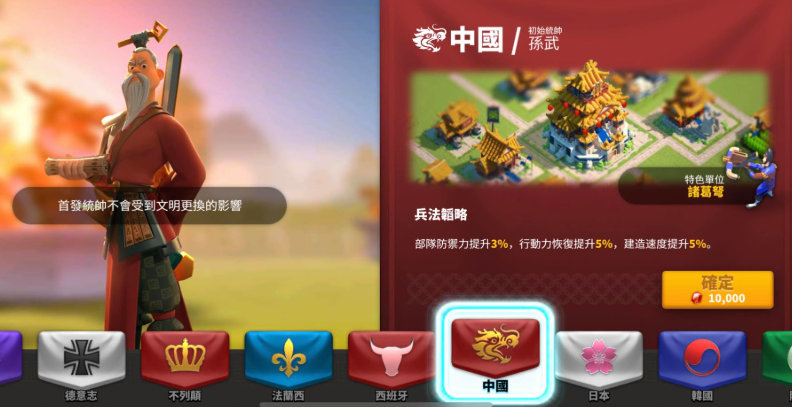 开局阶段需重点完成基础建设与文明选择。优先跟随主线任务引导升级市政厅,解锁核心功能建筑。初始文明推荐选择中国,其提供的建筑加速特性可显著提升前期发展效率。合理规划城内布局,优先升级资源生产类建筑如农场、伐木场、采石场及金矿,确保木材、食物等基础资源稳定产出。仓库等级需同步提升,防止资源溢出损耗;医院建设不可忽视,它是保存部队战斗力的关键设施。