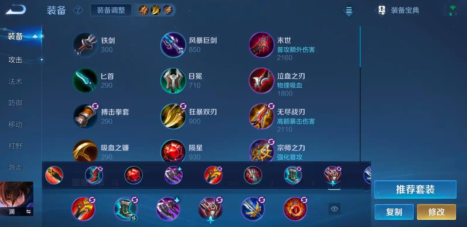 核心出装方案包括追击刀锋或贪婪之噬作为起始打野装备,配合抵抗之靴提升韧性,暗影战斧增强穿透和冷却缩减。铭文方面,推荐百穿组合:9个异变、1个祸源、10个隐匿和10个鹰眼,这种搭配最大化技能伤害而非依赖攻速或暴击。这种设置强化了澜的机动性和收割能力,确保他能在前期快速清野并支援线上。
