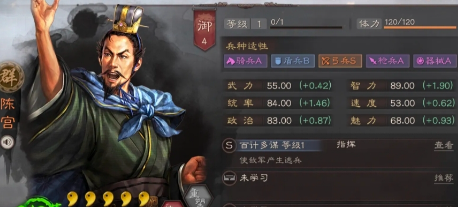 获得陈宫后,你会发现他的核心定位是辅助控制和谋略伤害输出,他的自带战法百计多谋能在每回合高概率对单体敌人造成真实伤害,无视防御效果,这在前期开荒或对抗高防御单位时特别实用。结合他的弓兵S级适性,常被用来与袁绍、朱俊等武将组成群弓阵容,这种搭配以高生存能力和稳定输出著称,能帮助你低成本地应对各种战斗场景。