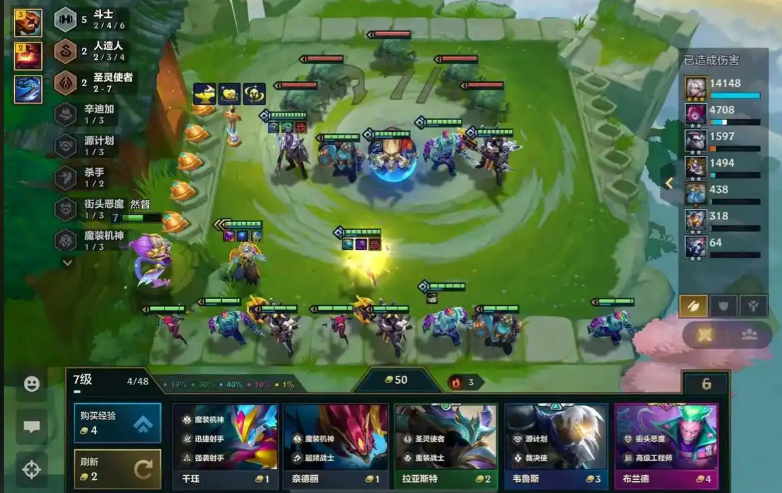 前期正常拉人口攒钱,别急着搜牌,用低费卡过渡就行。中期阶段到了7级左右开始发力,这时候要大搜一波,目标是把4吉祥物和3至高天凑齐,吉祥物前中期比秘术更实用。等升到8级后,根据场上魔法伤害多不多来决定是否把吉祥物换成秘术卫士。换阵时机很关键,换早了扛不住,换晚了吃不到魔抗加成。