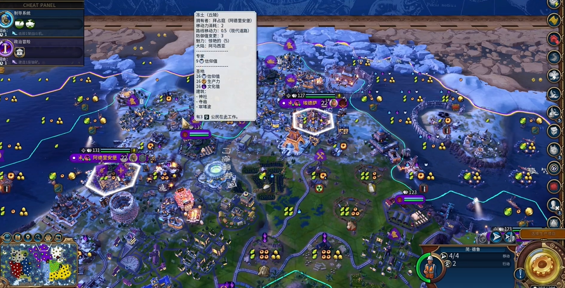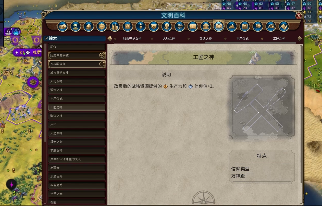 地形特化型万神殿需严格匹配开局资源分布。冻土或雨林开局可考虑极光之舞、神圣道路等冷门选项,沙漠地形则适配沙漠民俗,但此类选择泛用性较低。收获女神作为泛用强效选项,通过资源收割操作可获得等同于生产力的信仰值,但需精准规划工人使用次数,操作复杂度较高,与秦始皇的工人加速机制虽存在协同可能,却非最优解。宗教移民虽属通用强力选项,但在高难度对局中通常难以获取,不建议作为核心策略。